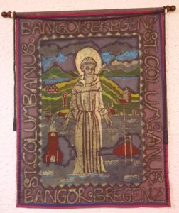 Artwork depicting St Kolumban in the Church of St Kolumban in Bregenz (Austria). Bregenz is associated with St Columbanus because he founded a monastery there around 611 AD with his companions, though they only stayed for about a year before the outbreak of war forced them to move on to Bobbio. Photo: Sarah Mac Donald.