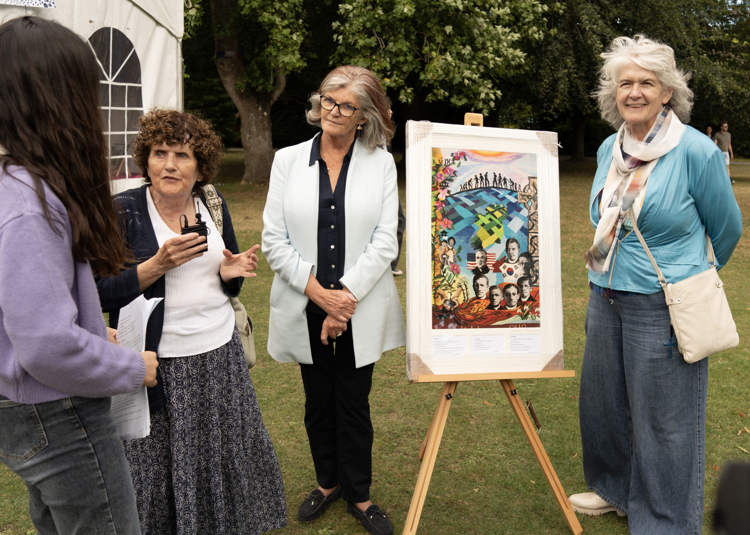Fr Donal O’Keeffe, Frances Crowe (Tapestry Artist), Jacqueline Creaven d’Towey (a cousin of Fr Francis Canavan. Jacqueline commissioned the tapestry by Frances Crowe to commemorate the Columban Martyrs who were killed in the Korean War), and Stephanie McNamara (a niece of Columban martyr Fr Tommie Cusack). Photo: ColumbanMissionImages.