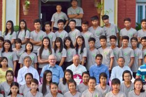 Fr Neil Magill with some of the students of the Mandalay Higher Education Centre (HEC).