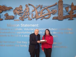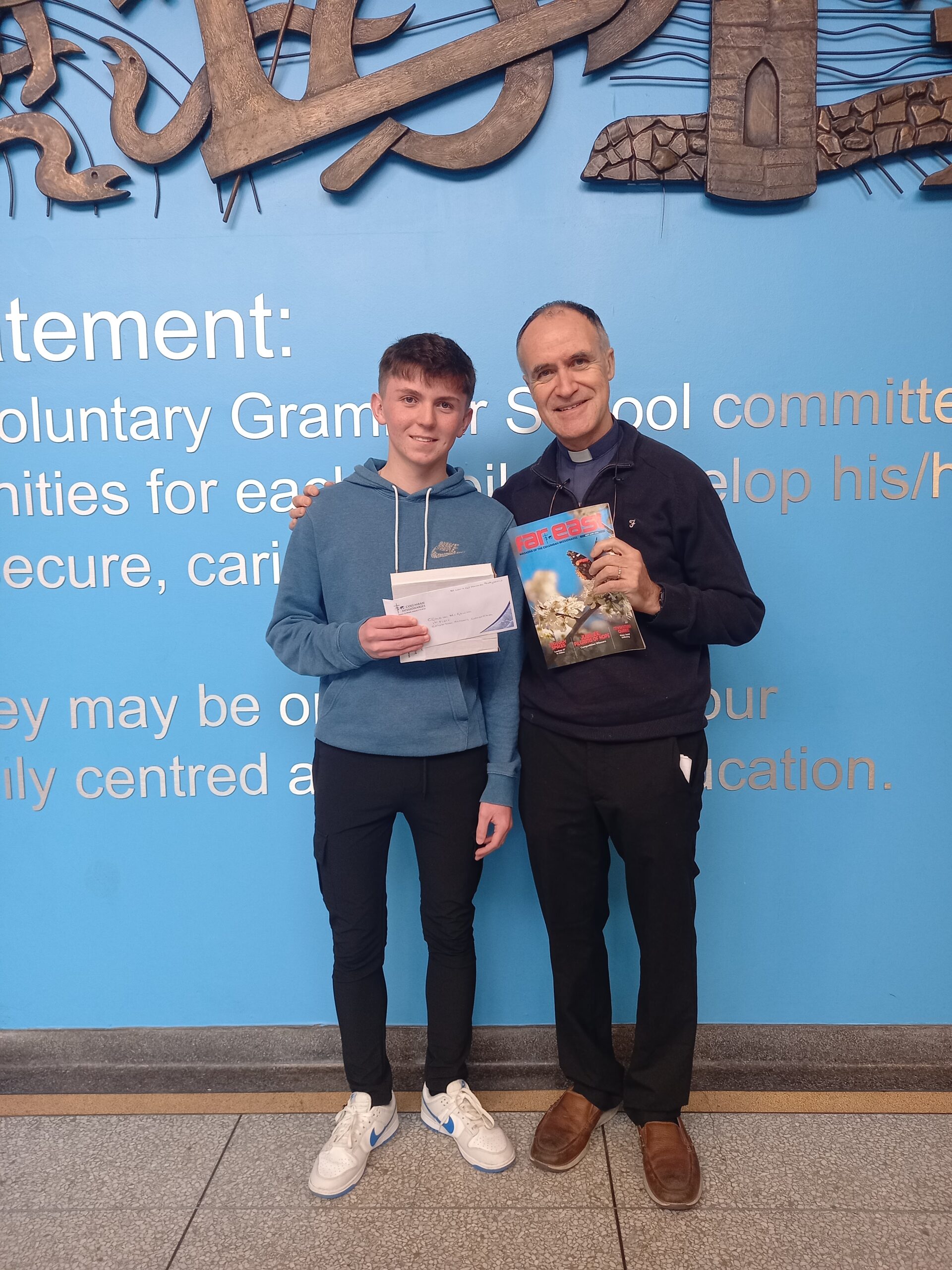 On Good Friday (18th April 2025), Columban Missionaries Frs Kevin McHugh and Pat Colgan paid a visit to St Louis’ Grammar School in Ballymena to present prizes to three winners in this year’s Columban Schools Media competition, writes Fr Pat Colgan.
