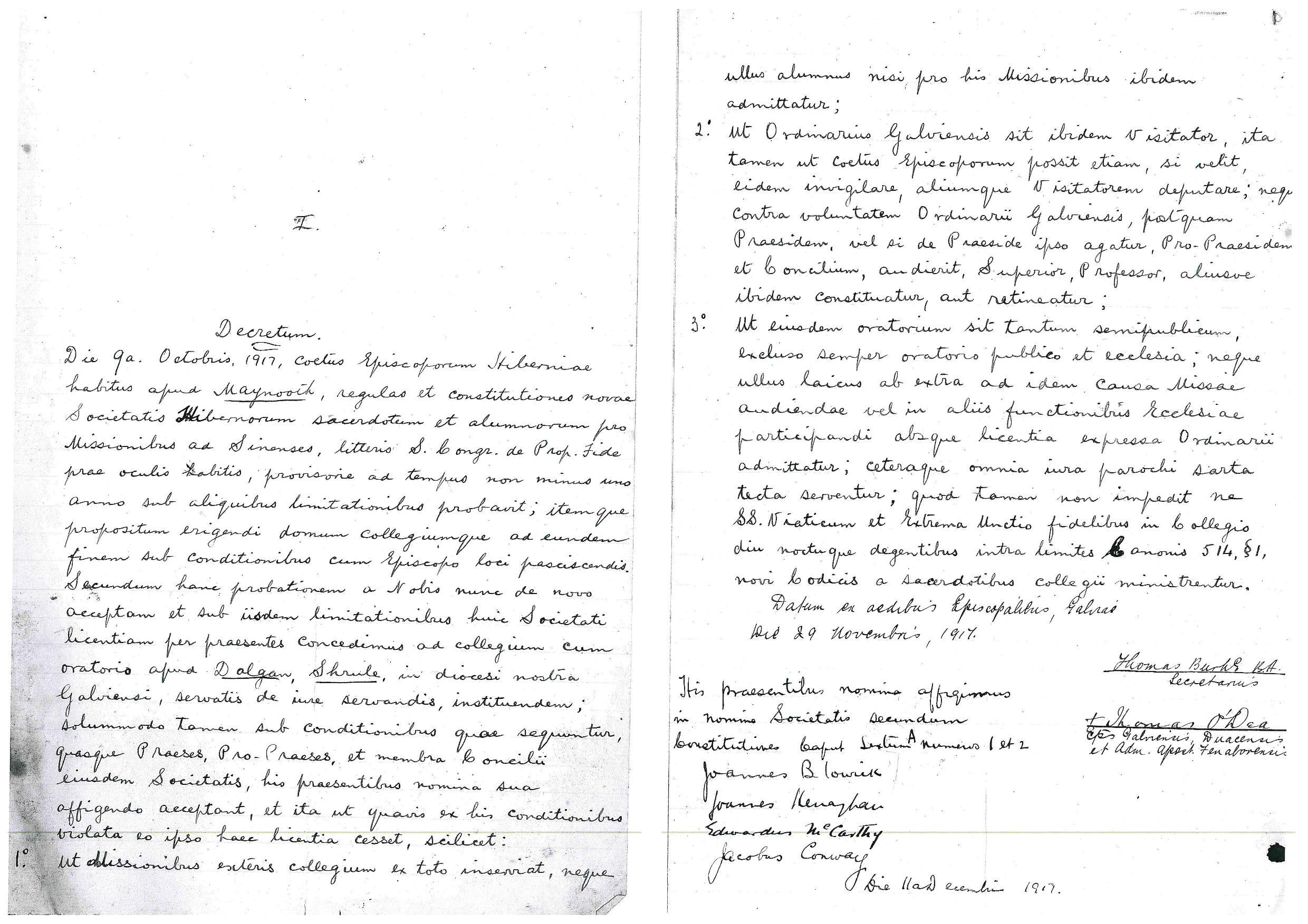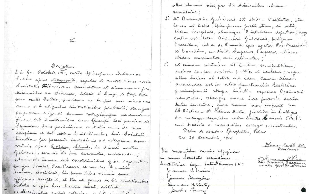 Trustees: Rev. D. Kenneally, Rev. P. O’Donovan, Rev. R. Husband, Rev. P. Colgan and Rev. P. Connaughton.