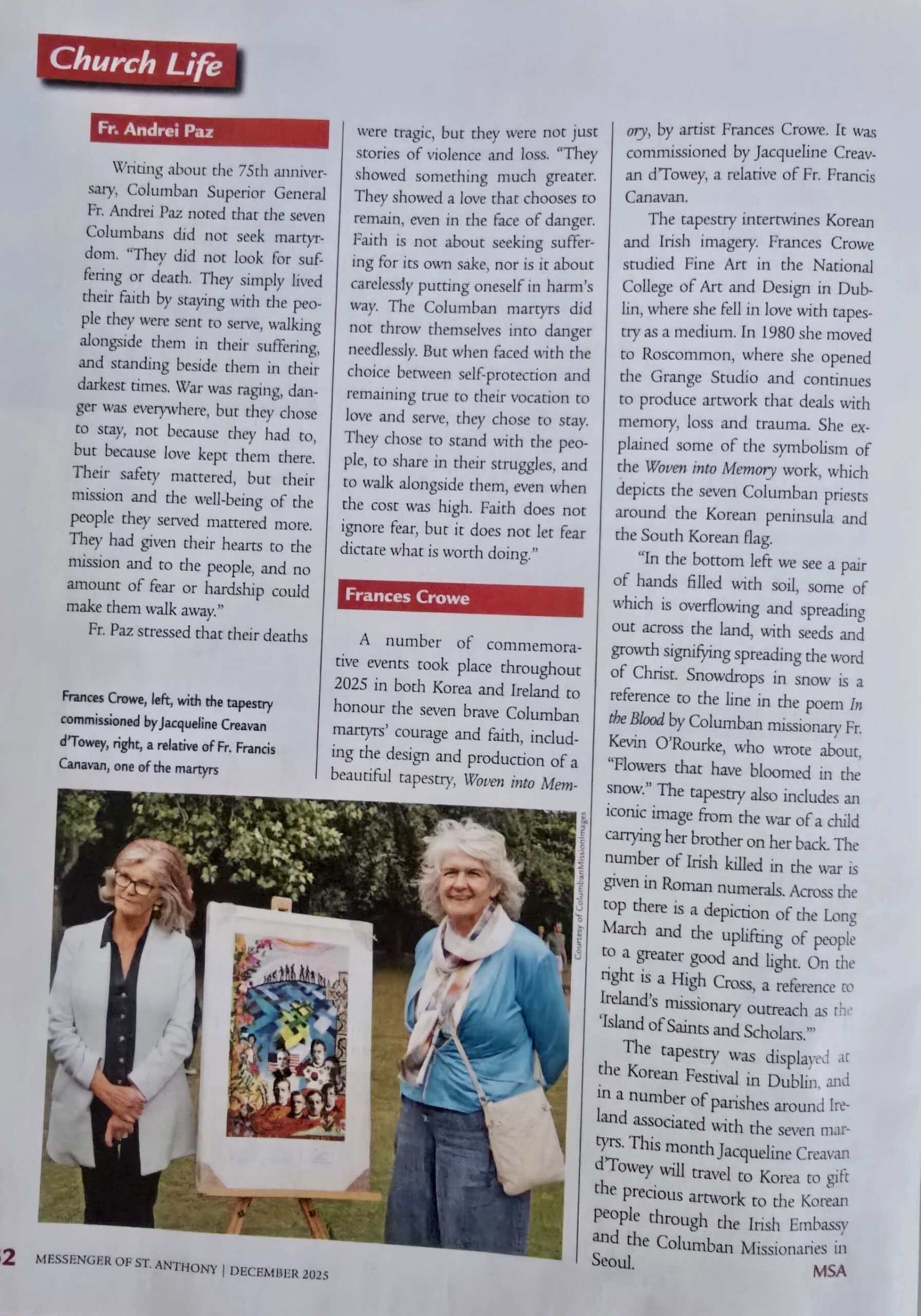 The Messenger of St Anthony (English language edition) featured the seven Columban Martyrs who died in Korea in 1950 in the December 2025 edition.
