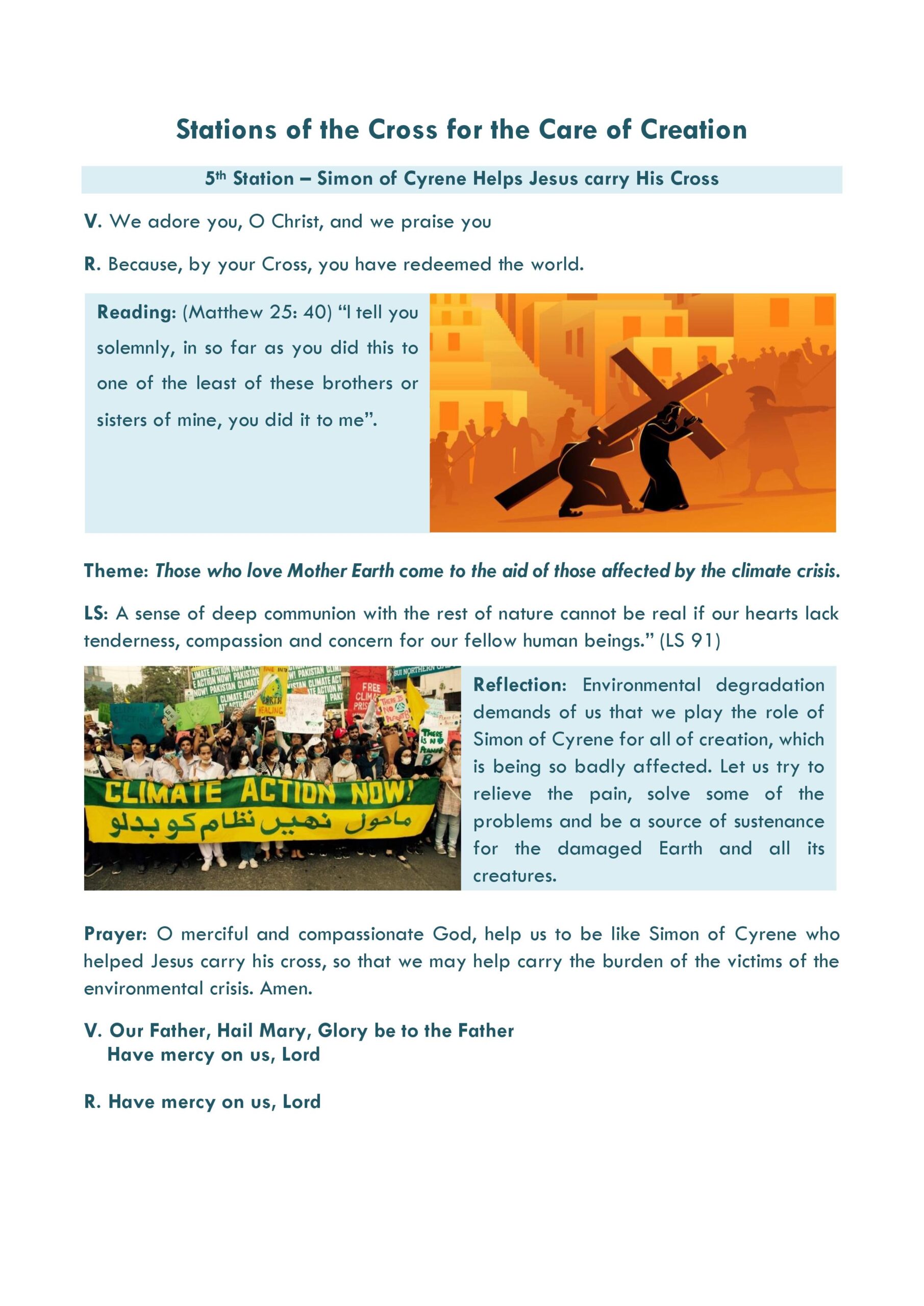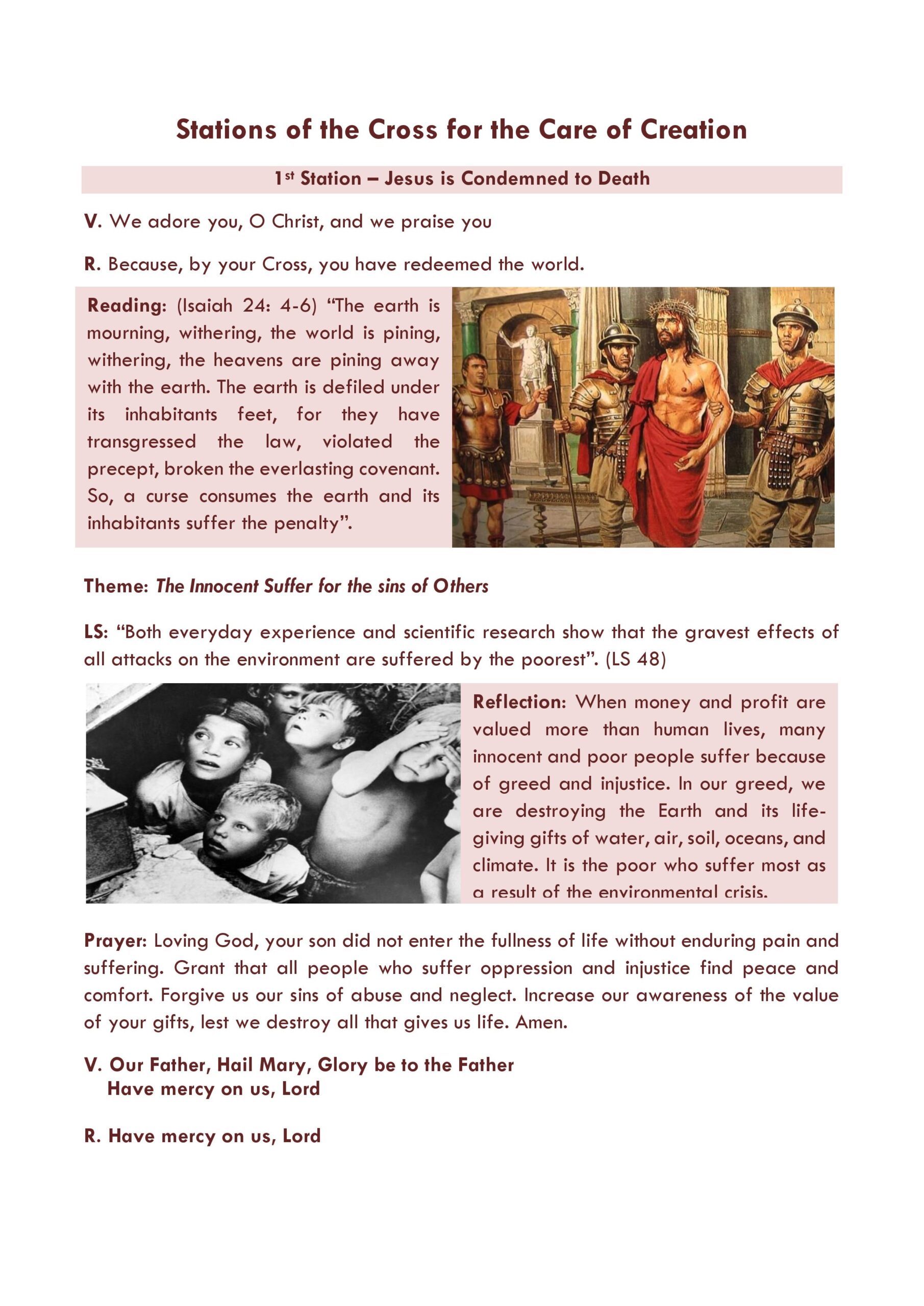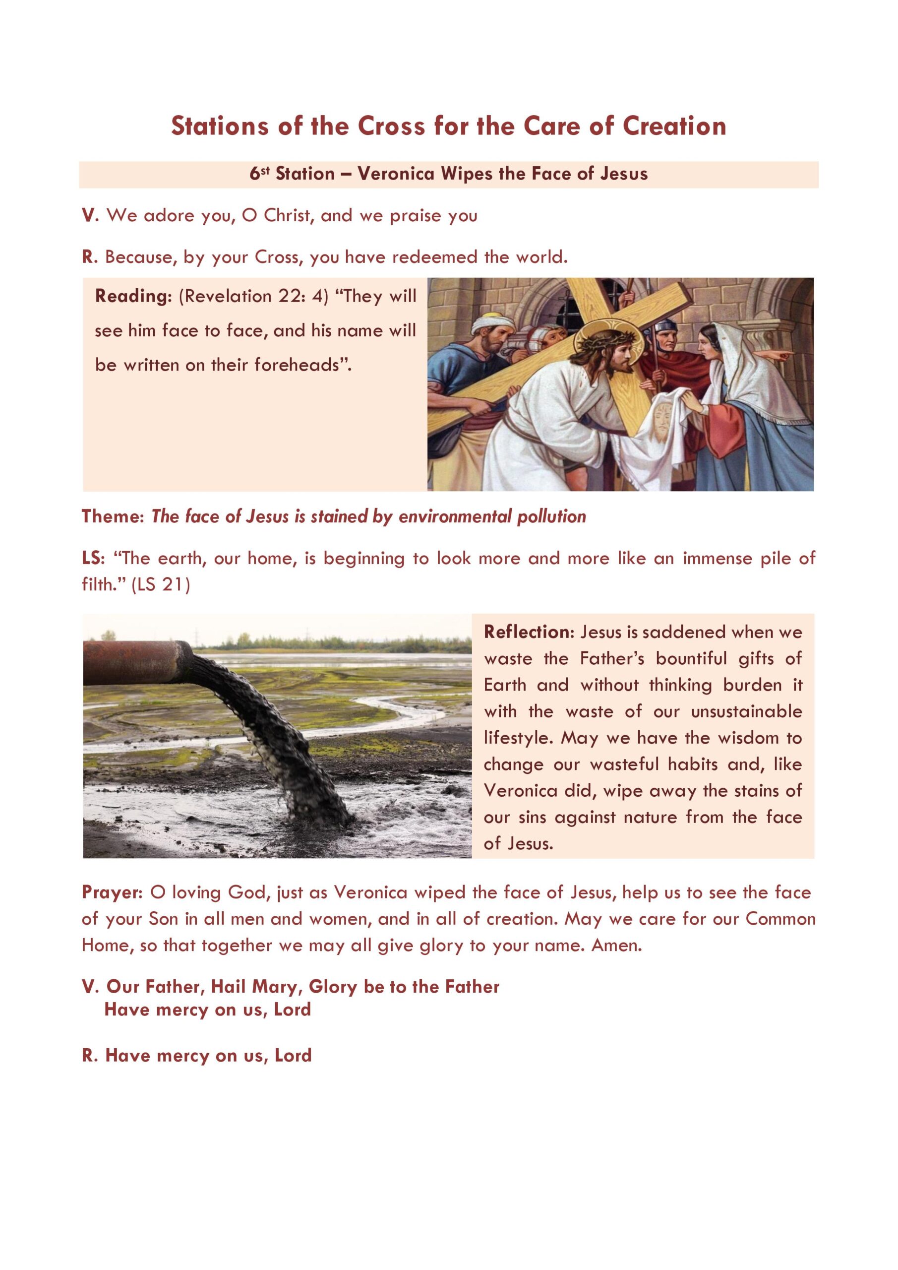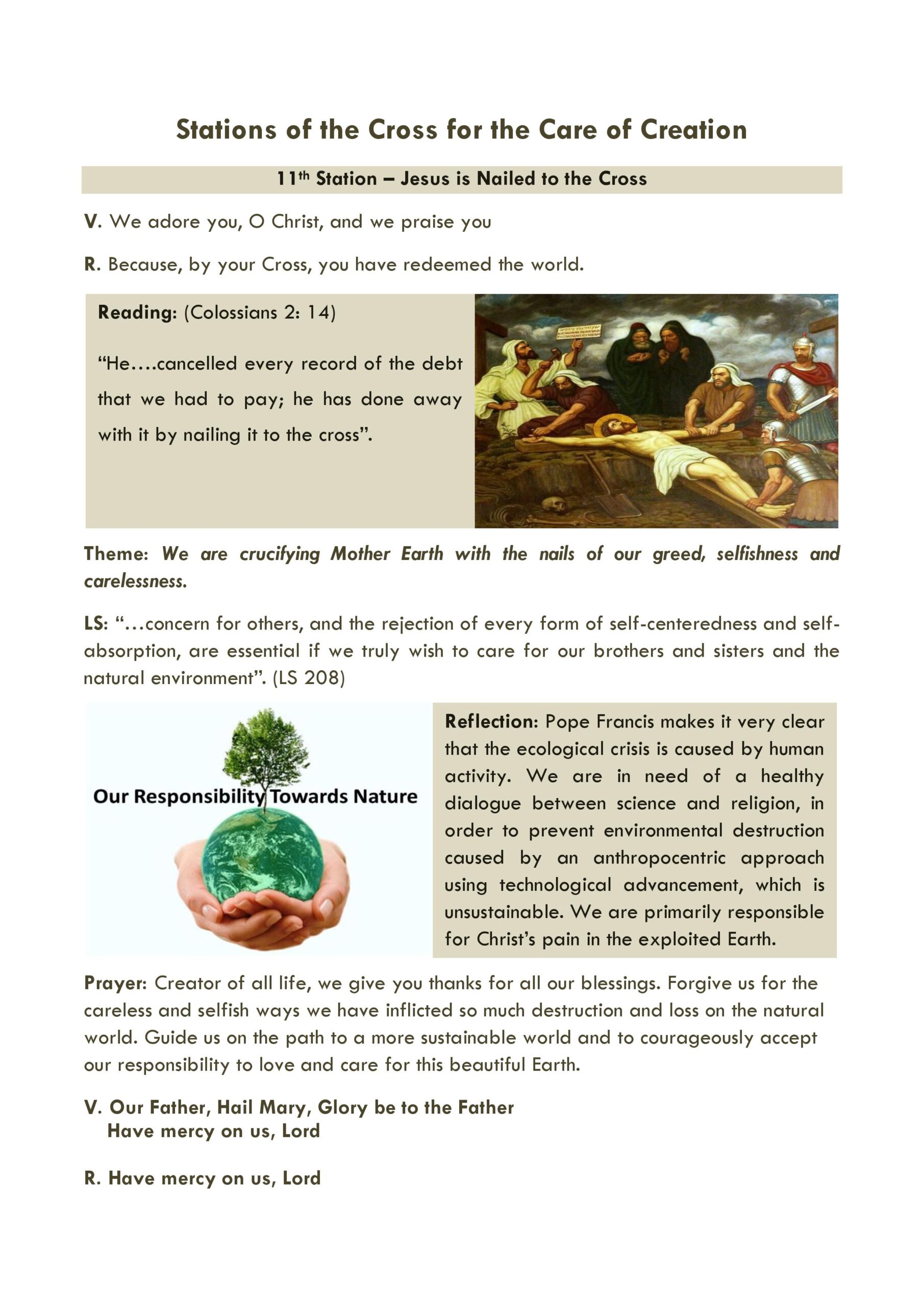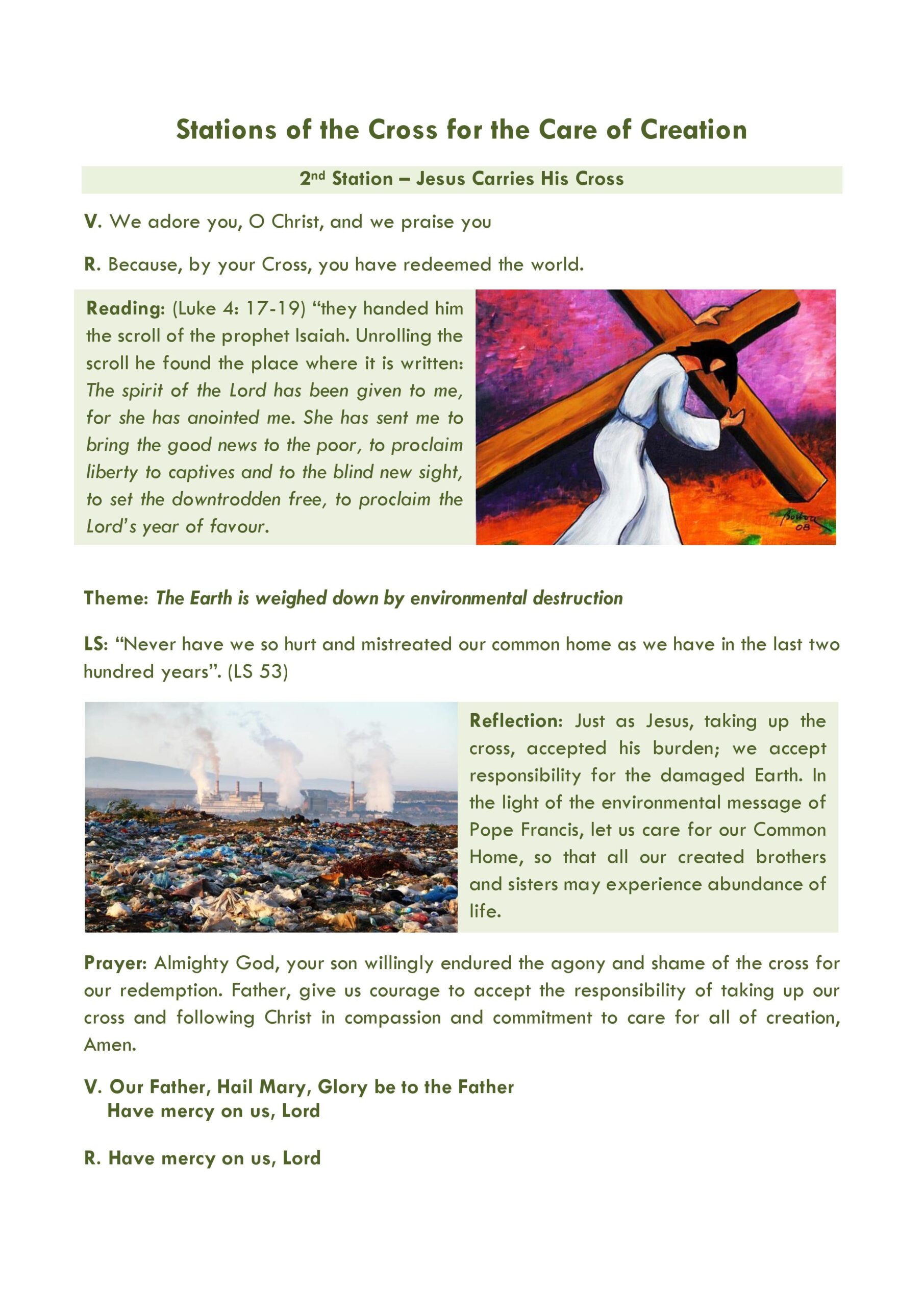 “We hope that this new Stations of the Cross will be of help to you in your Lenten preparations for Easter, and also help to make the connection between the sufferings of Jesus and the sufferings of Mother Earth, our Common Home, because of pollution, climate change and environmental destruction. In doing so, we will be responding to the call of Pope Francis, that our faith must inspire us to care for our Common Home.”